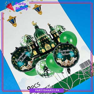 9pcs/set Green Ramadan Kareem Mosque Shape Foil with Balloons Set For Ramadan Decoration