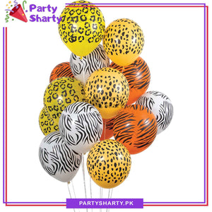 Animal Print Latex Balloons, Zoo Party Balloons, Zebra, Tiger, Leopard Print Balloons (Pack of 15)