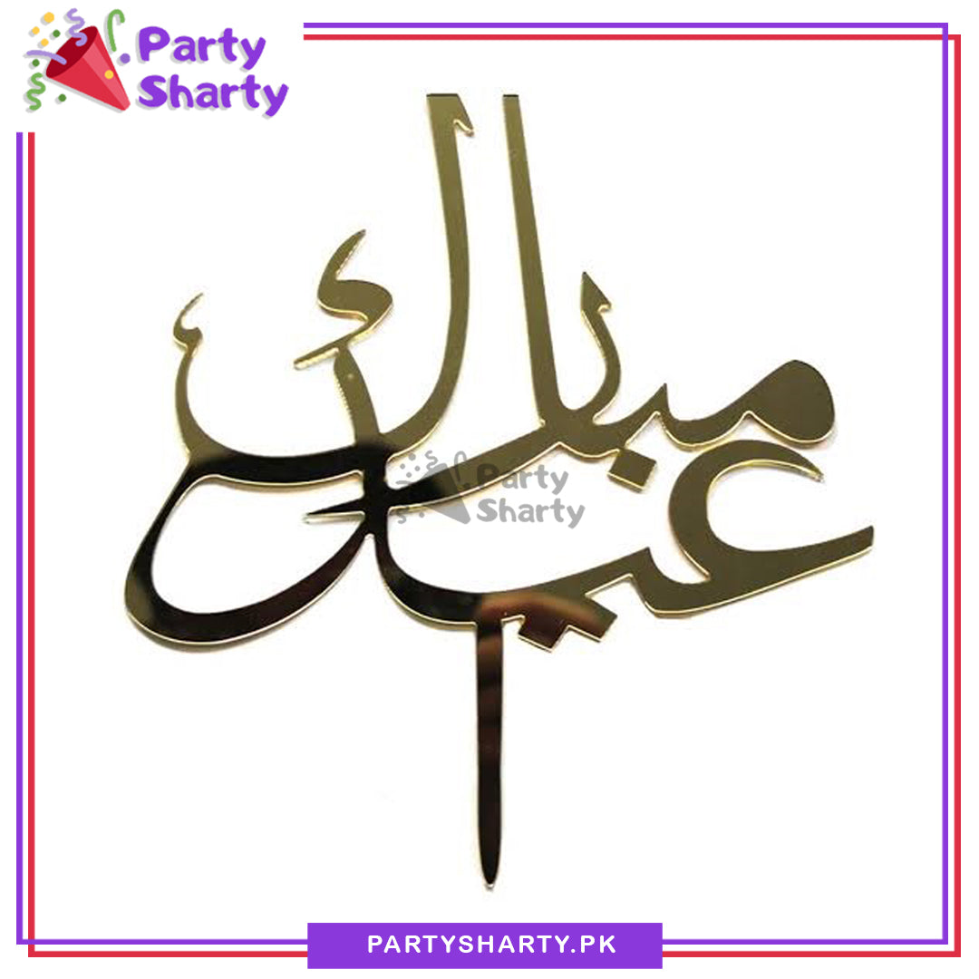 Arabic Calligraphy Golden Eid Mubarak Cake topper for Eid Decoration and Celebration