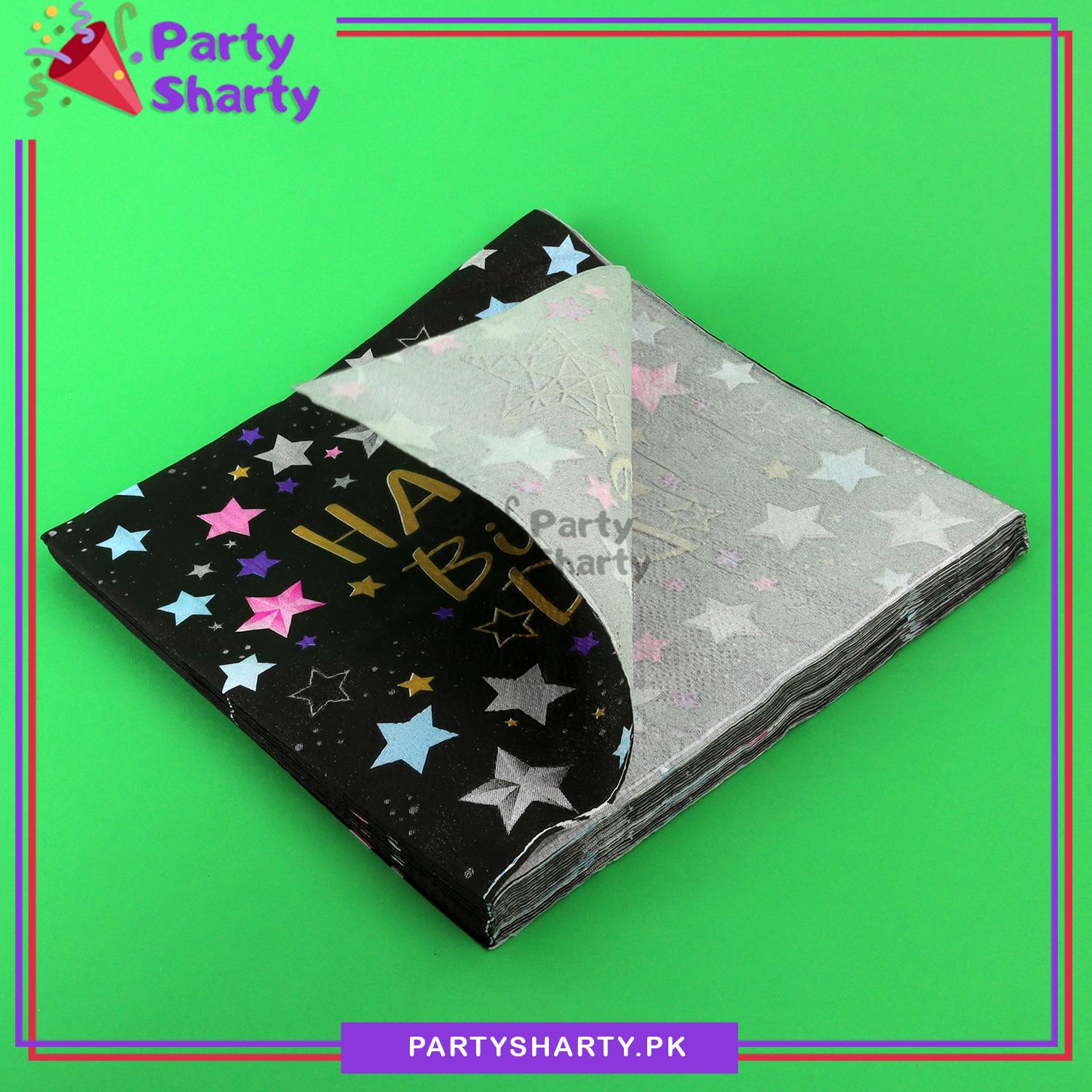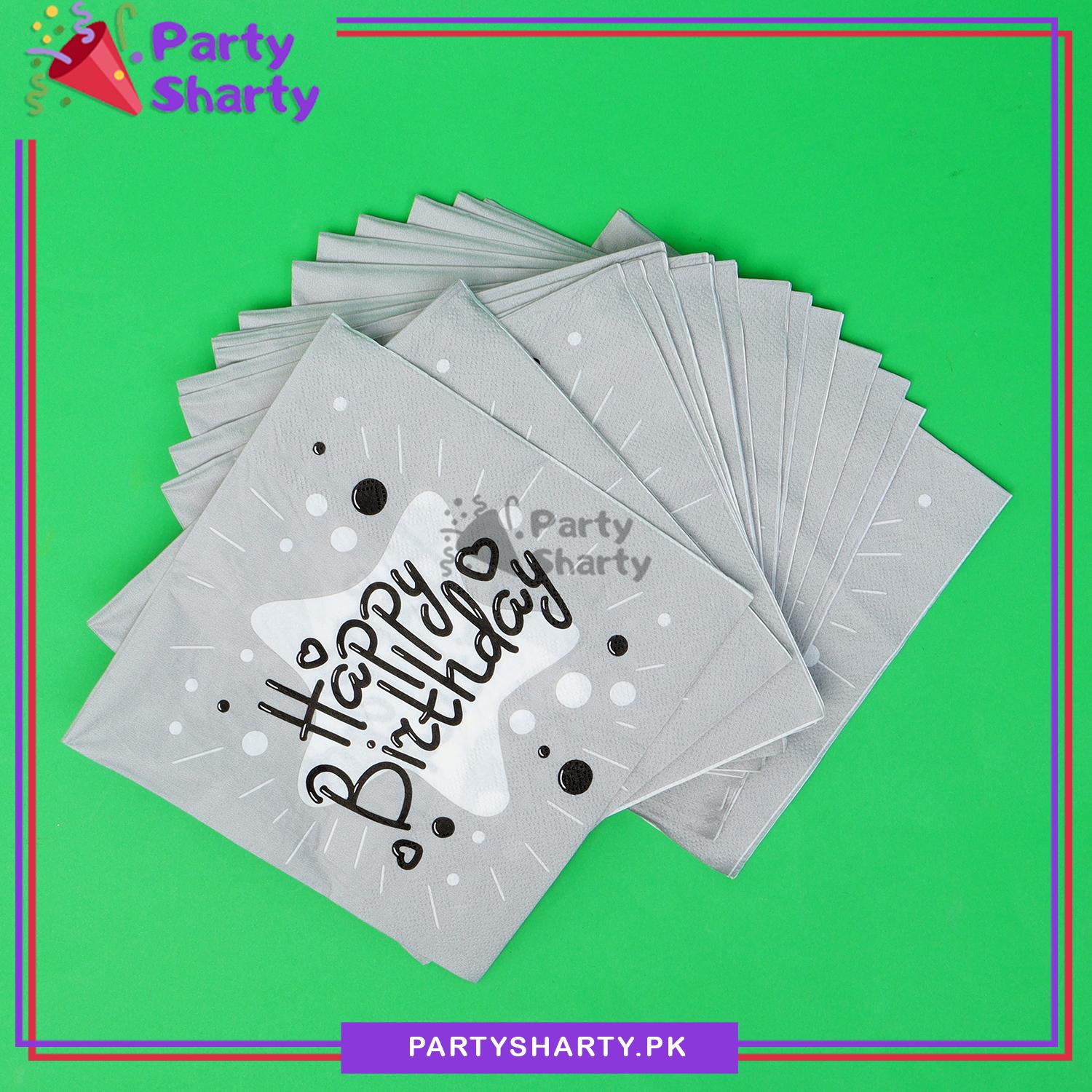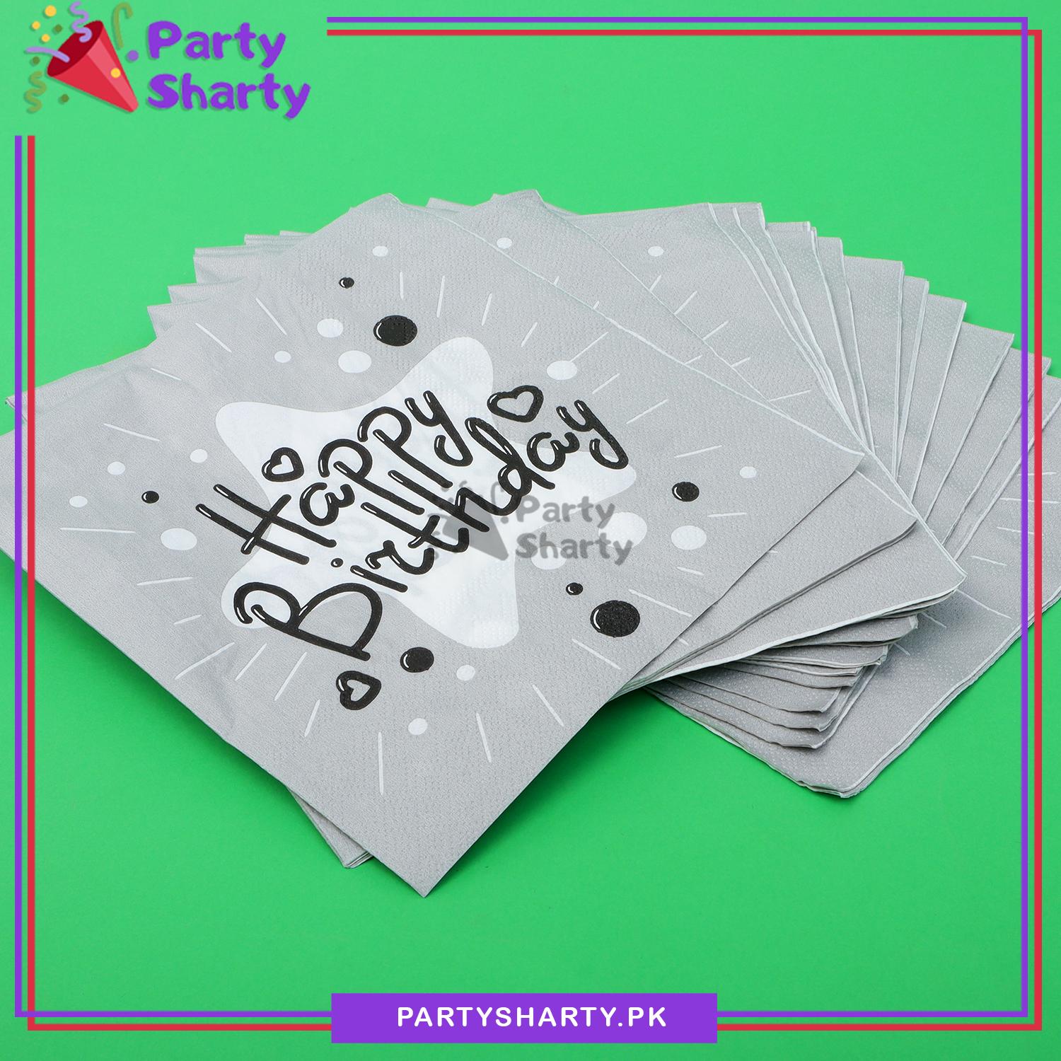 Beautiful Happy Birthday Printed Napkins Black For Party Decoration And Celebration