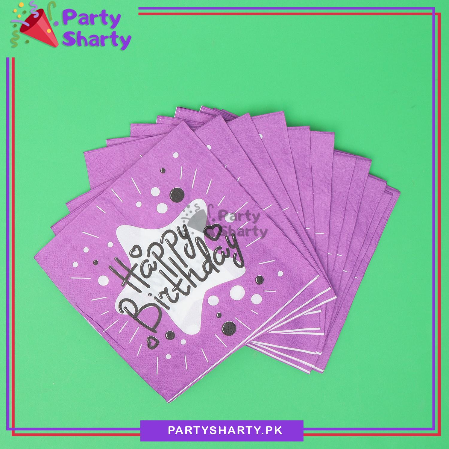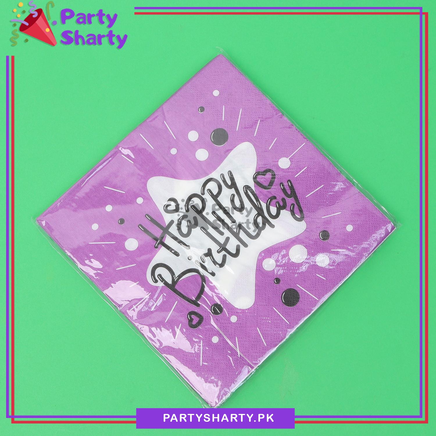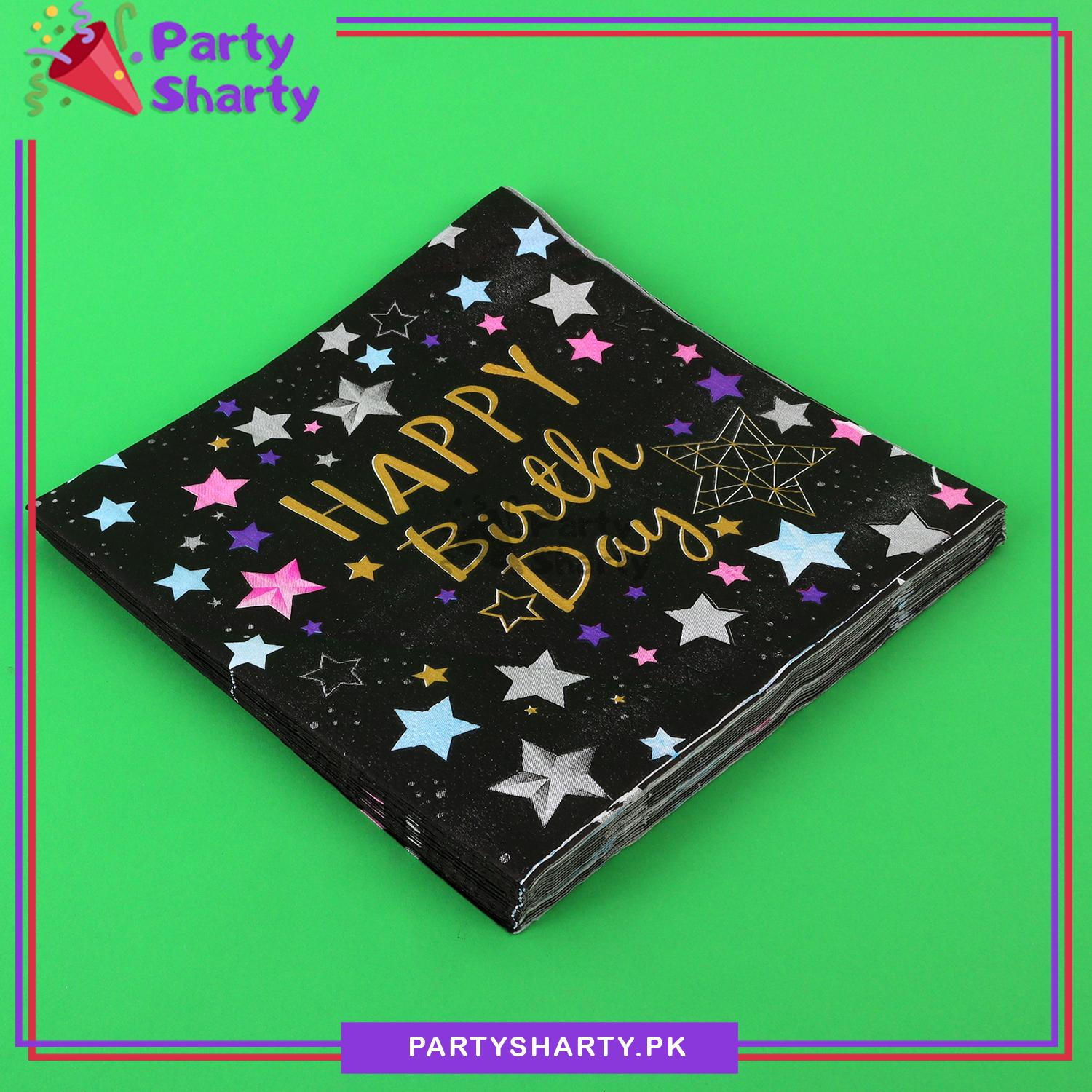 Beautiful Happy Birthday Printed Napkins Black For Party Decoration And Celebration