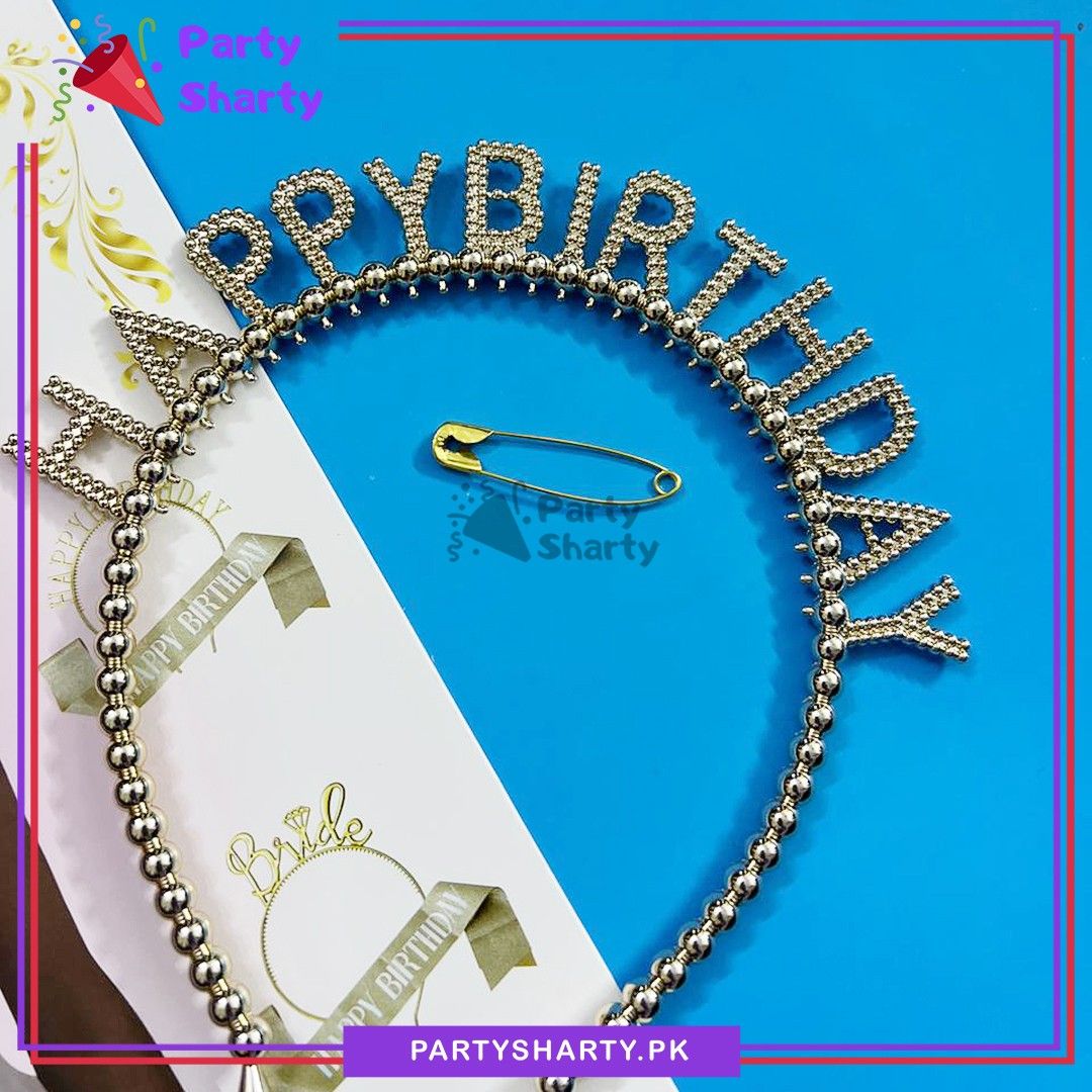 This glamorous happy birthday headband is a modern alternative to a tiara that a birthday girl can wear. This metallic color headband will add glamour and style to a girl's birthday party.
