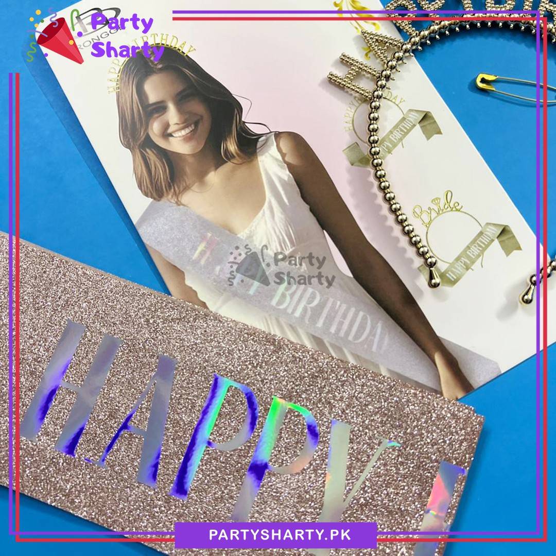 Birthday Girl Shiny Plastic Hairband With Sash for Birthday Event & Celebration