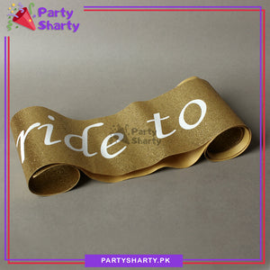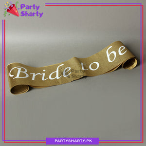 - This lovely made "Bride to Be" sash is sparkling with a glittered and screen lettering. It's fashionable, durable, and washable. This fashionable sash can be worn for any Bridal shower theme. Perfect for the Bachelorette Party too!