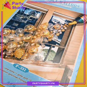 - Package Include: 1pc Large Champagne Bottle Foil Balloon (Size: Approx. 37 inches / 94 cms) + Approx. 60 pcs Latex Balloons (Transparent, Golden and Grey mixed) + 10pcs Golden Confetti Balloons