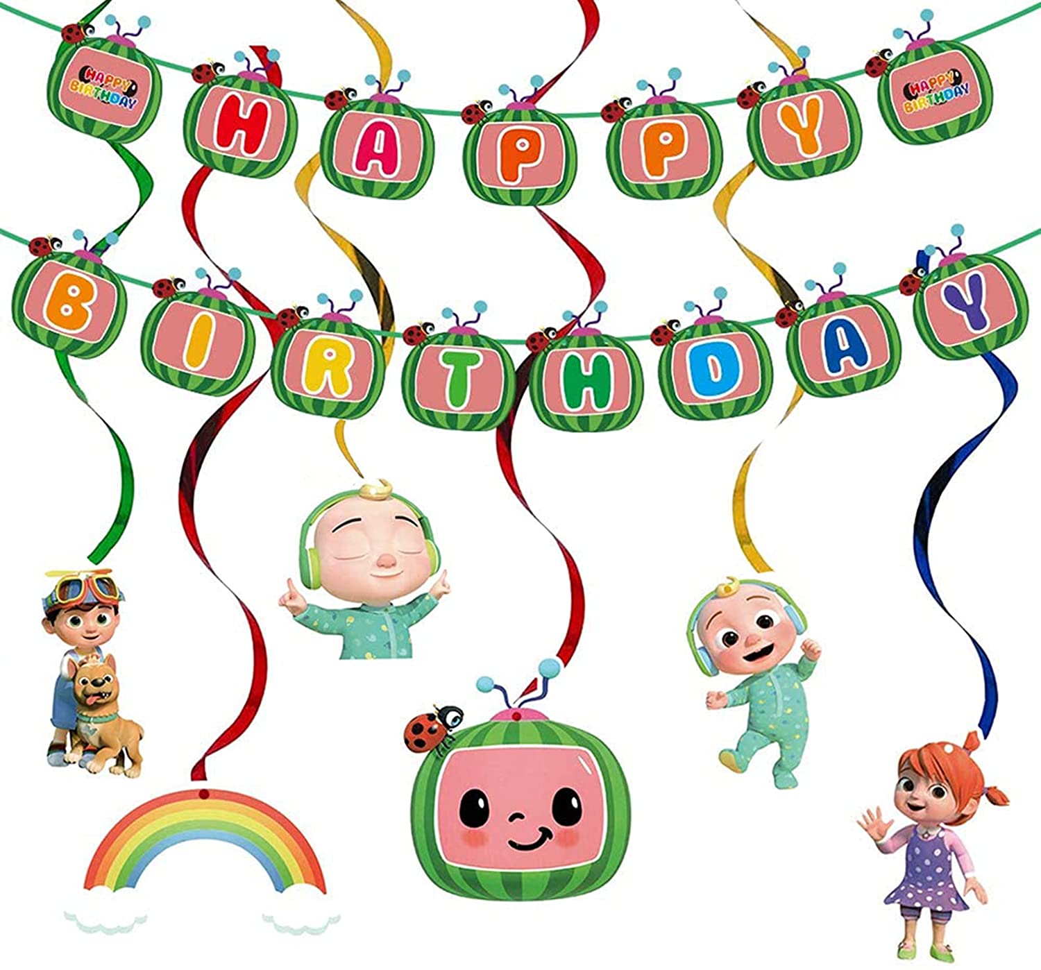 Cocomelon theme Swirls are perfect for theme birthday party decoration. It will add colors to your decoration. You can add with other cocomelon theme item to create a thematic birthday decoration