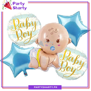 Crawling Baby Boy Shaped Foil Balloon Set for Baby Shower, Welcome Baby & Gender Reveal Decoration and Celebration