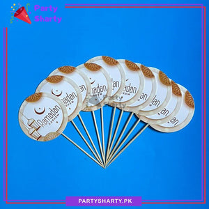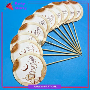 Crescent Moon With Lantern Printed Ramadan Kareem Cup Cake / Mithai Toppers Pack of 10 For Ramadan Decoration