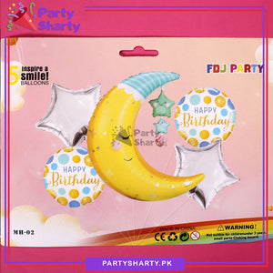D-1 Cute Sleeping Moon Shaped with Star Foil Balloon Set - 5 Pieces For Birthday Party Decoration