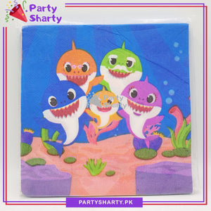 - Baby Shark convenience of disposable party supplies. This pack of 20 pcs Baby Shark Paper Napkins makes it easy and affordable to serve guests their favorite party snacks or clean up those unexpected spills at your little baby's birthday party. Baby Shark Paper Napkins are sold in a package of 20 pcs.