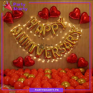 D-2 Happy Anniversary Golden with Red Balloon Theme Set For Anniversary Decoration and Celebration