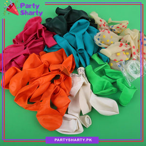 - Package Include: Happy Birthday Card Banner (Multi) + 2pcs Candy Round Shaped Foil Balloons (18 inches) + 50pcs Latex Balloons - Orange, Dark Pink, Sea Green, Light & Dark Green and White Mixed + 10pcs Polka Dots Multi Transparent Balloons + Arch Tape
