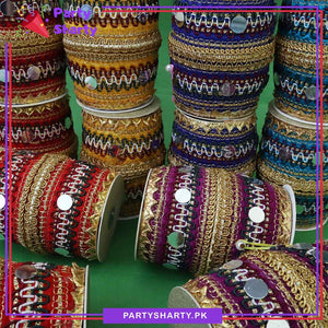 Crafted from high-quality fabric, these pouches are durable and visually appealing, ensuring they can be reused for various ceremonies and events. The sturdy construction of each pouch ensures that they can hold small items such as sweets, wedding favors, or even small gifts, making them an ideal choice for presenting tokens of appreciation to guests. Their unique dhol shape adds a fun, traditional touch that reflects the vibrant spirit of the celebrations.