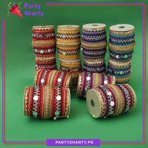 The 6 Pcs Multi-Colors Nikkah Mubarak Dhol Shape Nikkah Pouches are a vibrant and festive addition to any traditional celebration. Designed in the shape of traditional dhol drums, these pouches bring a touch of cultural richness and cheerfulness to events such as Nikkah, Maiyun, Mendhi, Shadi, Dholki, and other festive parties. With their striking multi-color design, they enhance the overall decor and create an inviting, celebratory atmosphere for your special occasions