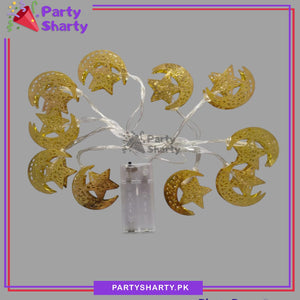 D-3 Golden Crescent With Star Shaped Metal LED String Lights For Ramadan Festival and Celebration