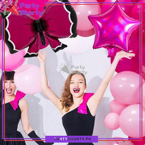 Dark Pink & Black Bow Shaped Foil Balloons For Birthday, Welcome Baby Party Decoration and Celebration
