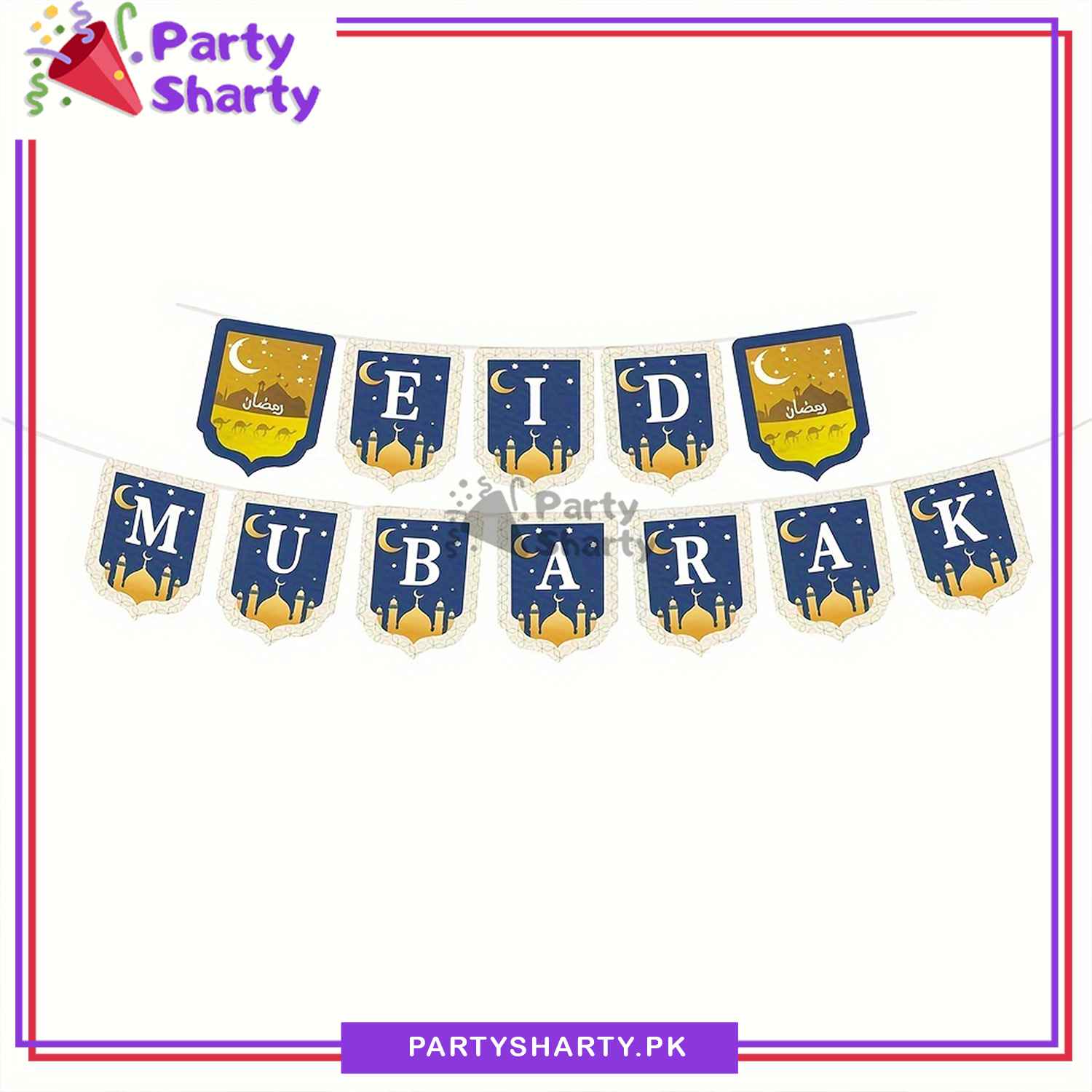 - Gilding EID MUBARAK Banner creates a pleasant atmosphere to Muslim Eid, makes your party active and lively