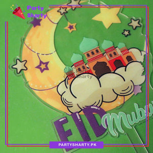 Eid Mubarak Crescent, Star, Cloud with Mosque Printed Cake topper for Eid Decoration and Celebration