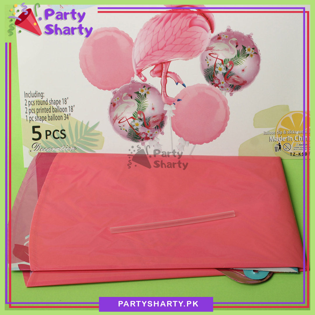 Pink Flamingo Cartoon Foil Balloon Set - 5 Pieces For Flamingo Theme Birthday Party and Celebrations