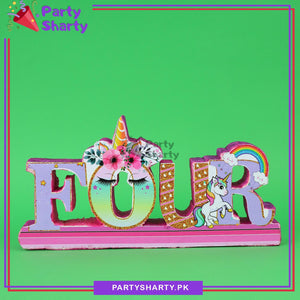 FOUR Thermocol Standee For Unicorn Theme Based Fourth Birthday Celebration and Party Decoration