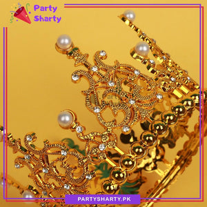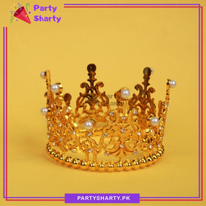 Golden Beautiful pearl-adorned Cake Crown For Birthday Party Event and Celebration