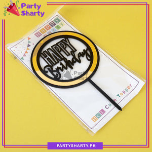 Golden & Black Happy Birthday Double Layer Round Acrylic Cake Topper for Birthday Celebration