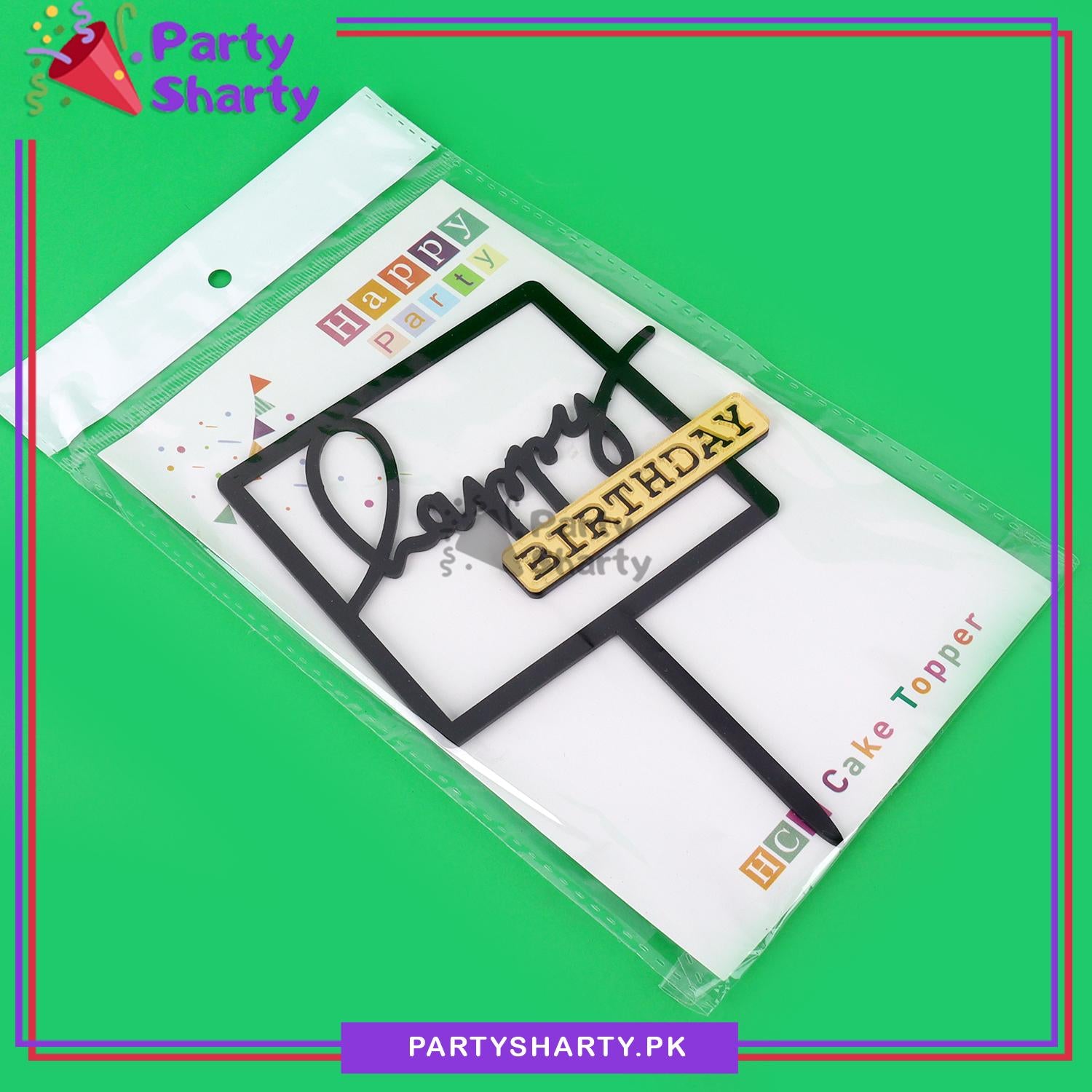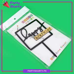 Golden & Black Happy Birthday Double Layer Square Shaped Acrylic Cake Topper for Birthday Celebration