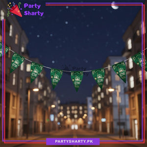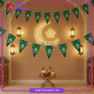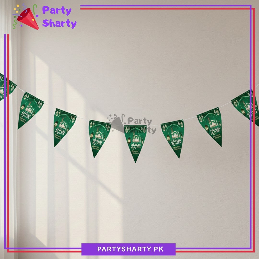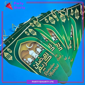 Green Ramadan Kareem With Mosque Printed Party Flags Pack of 10 For Ramadan Decoration