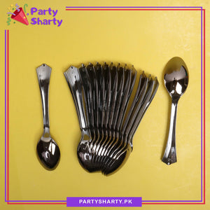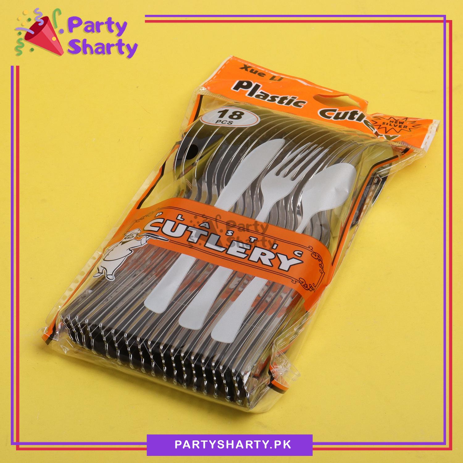 Grey Silver Classic Heavy Duty Plastic Silverware 18pcs/Set (Spoon / Fork) For Birthday, Anniversary, Wedding Party Decoration and Celebration