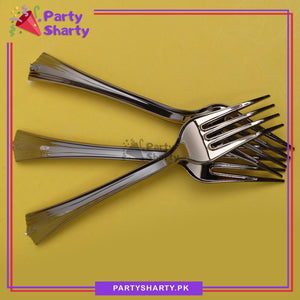 Create an elegant and sophisticated tableware with our Silver Finish Plastic Flatware and Cutlery Sets; featuring premium quality heavy duty plastic forks, knives, and spoons. Our luxurious line of Silver Plastic Cutlery combines the convenience of disposability with the charismatic appeal of refined flatware. Make your cleanup time a cinch for any occasion with our eye-catching plastic cutlery. These glittering Cutlery Set are an ideal choice for cakes, side dishes, salads, cereals, desserts, appetizers, and more. The use of disposable avoids having to do the dishes after dinner.