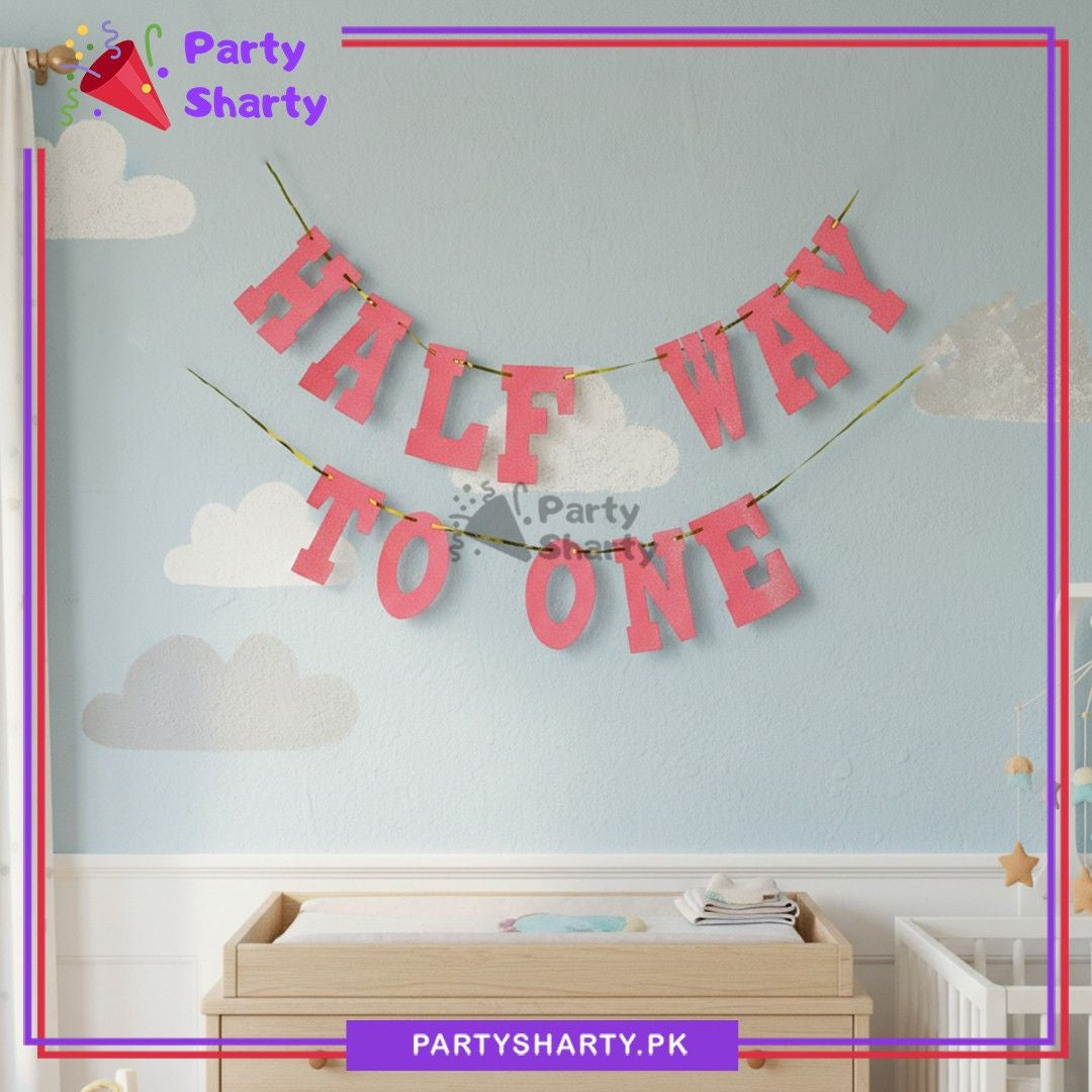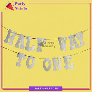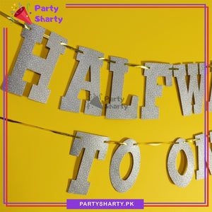 HALF WAY TO ONE Glitter Foamic Banner For Half / 6 Month Birthday Decoration and Celebration
