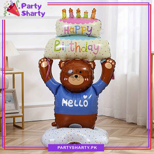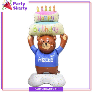 Happy Birthday Cake Lifting Teddy Bear Foil Balloon For Teddy Bear Theme Party Decoration And Celebration