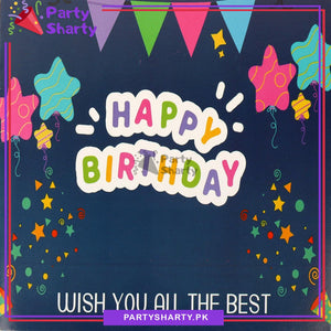 Happy Birthday Colorful Flag, Star & Dots Design Greeting Card