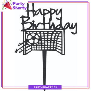 Happy Birthday Football Theme Acrylic Black Cake Topper for Theme Based Party Decoration And Celebration