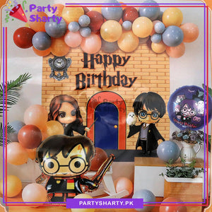 - Package Include: Happy Birthday Banner (Size: Approx. 26x27 inches) + 1pc Harry Potter Character Foil Balloon (approx. 24 Inches) + 1pc Harry Potter Theme Round Foil Balloon (Size: Approx. 18 inches) + 50pcs Latex Balloons (Light Blue, Yellow, Apricot & Coffee Brown Mixed) + Arch Tape + Dotted Glue Tape Sheet