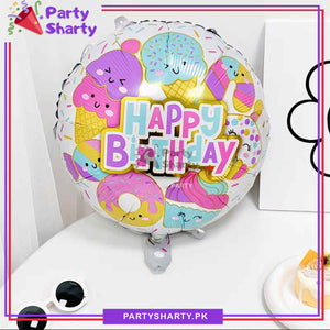 Happy Birthday Pastel Ice-cream, Candy & Donut Printed Round Shaped Foil Balloon For Birthday Party Decoration and Celebration