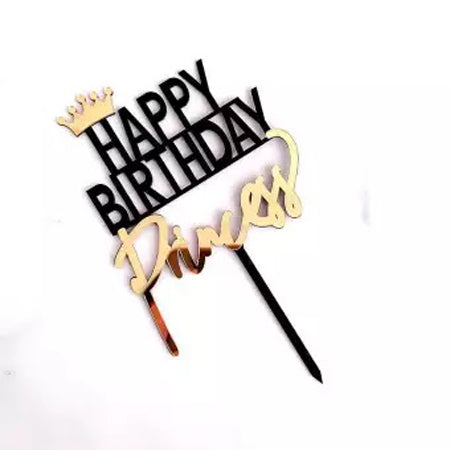 Happy Birthday Prince / Princess / King / Queen Acrylic Cake Topper for Royal Birthday party Decoration and Celebration