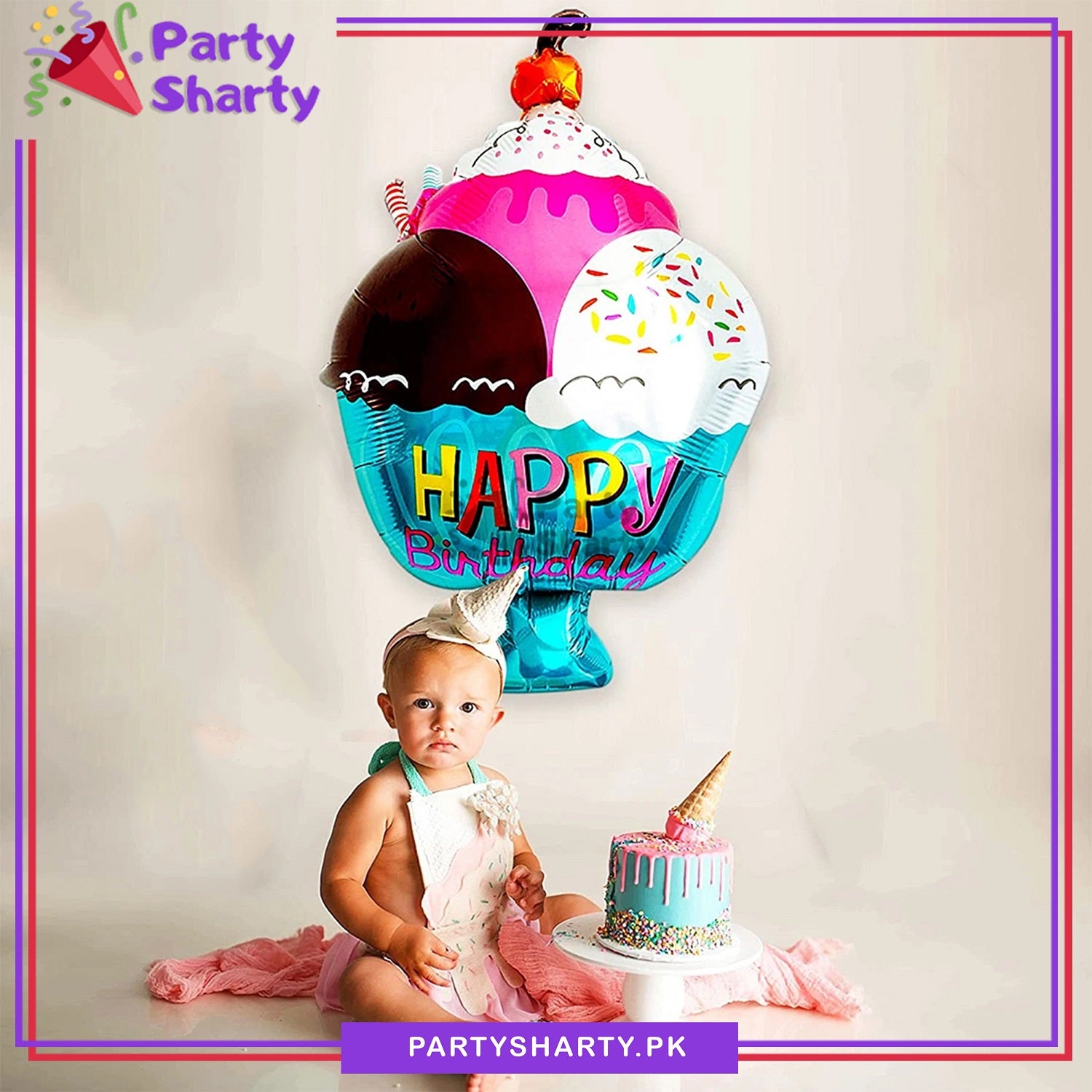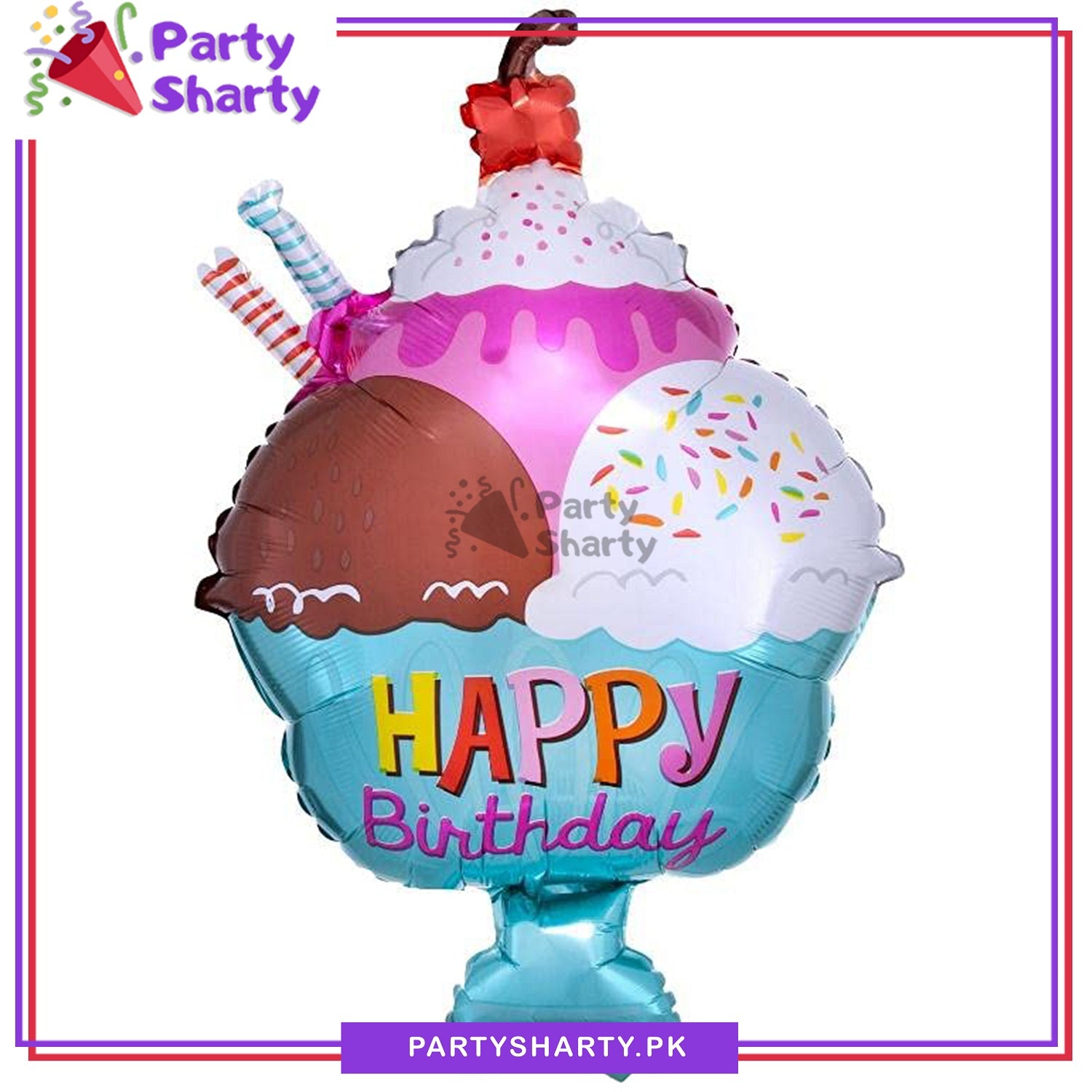 Happy Birthday Printed Ice Cream Cup Shaped Foil Balloon For Candyland Theme Birthday Decoration