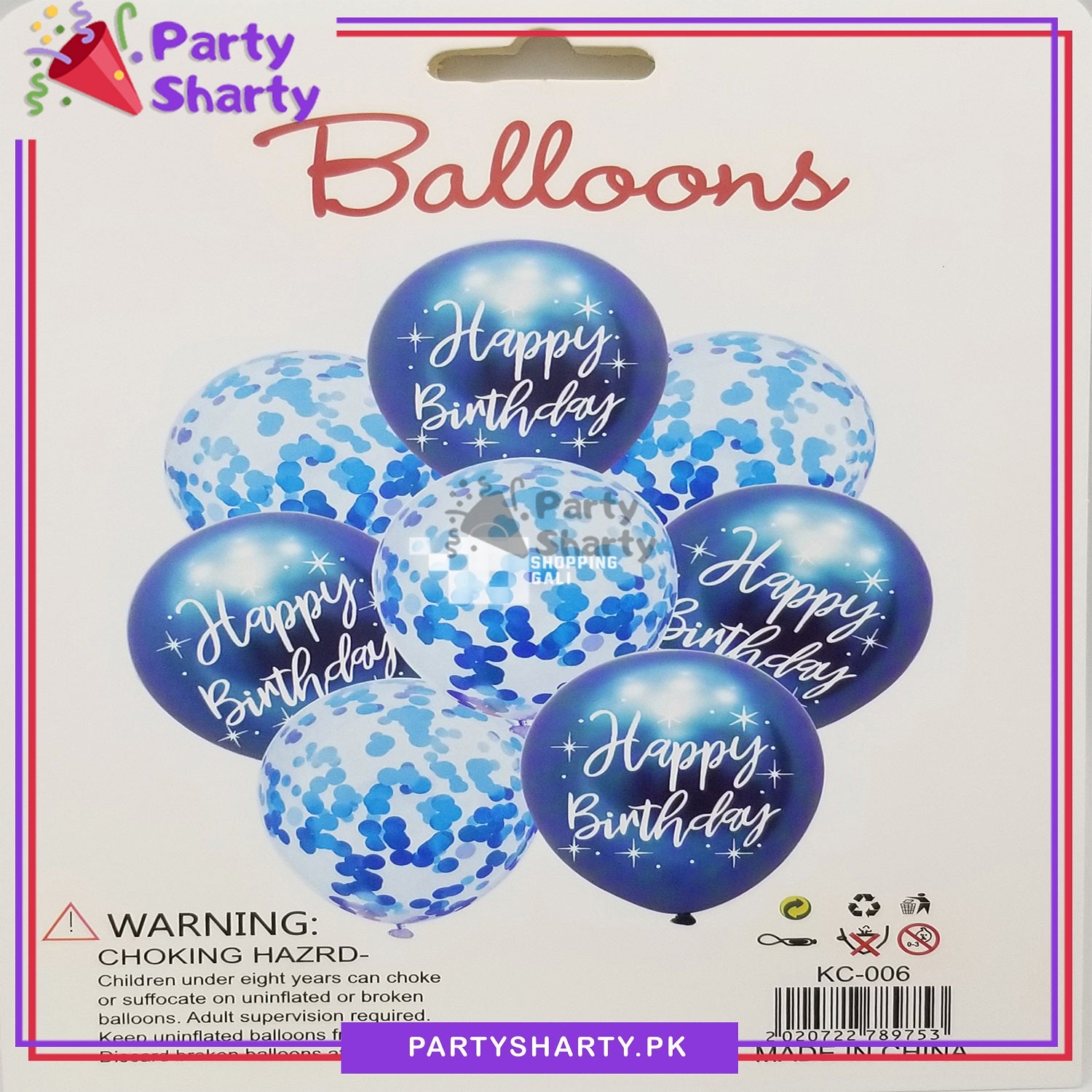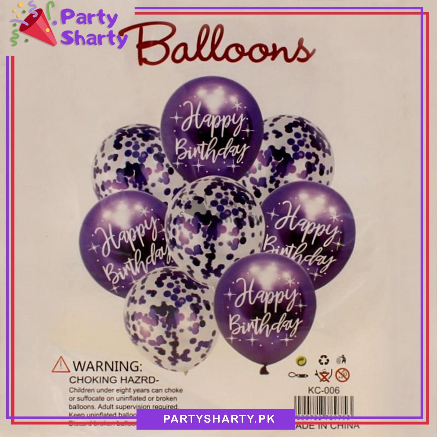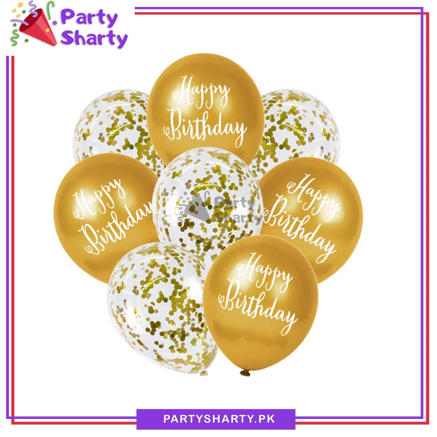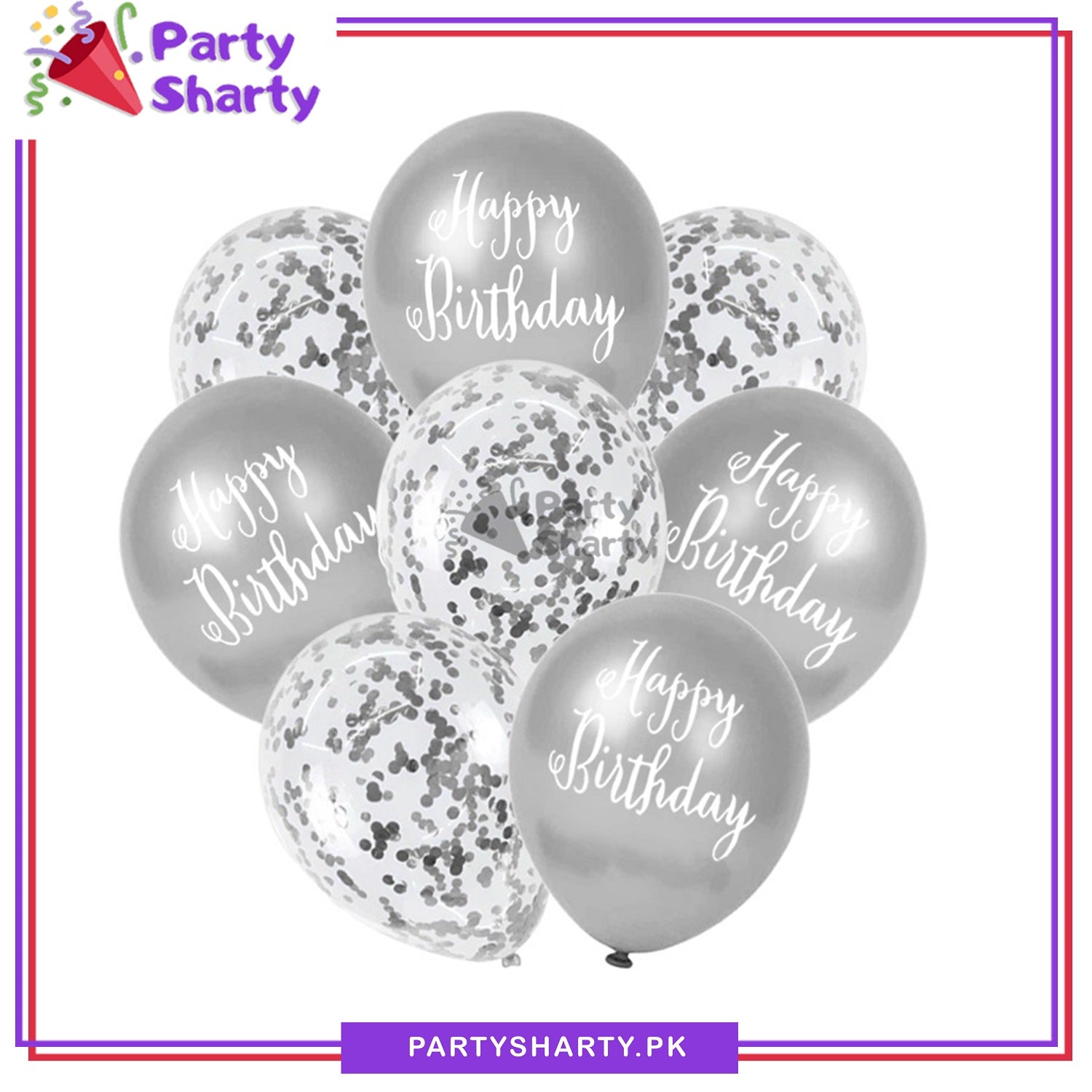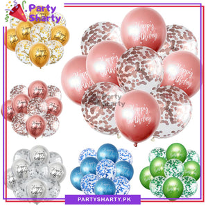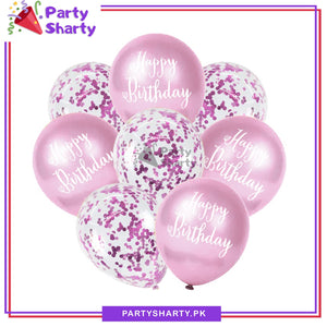 Happy Birthday Printed Metallic Balloons with Confetti Filled Balloons for Party Decoration (8 pcs / set)