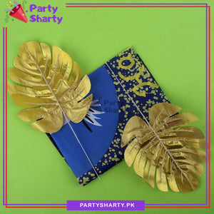 - Package Include: Royal Princess Theme Banner (Approx. 27 inches) + Crown Shaped Foil Balloon - Golden - Size 12 inches + 2pcs Star Shaped Foil Balloon (Size approx.. 10 inches) + 3pcs Star Shaped Foil Balloon (Size approx.. 5 inches) + Approx. 35 Latex Balloons (Blue & Golden Mixed) + 2pcs Golden Artificial Leave + Arch Tape + Glue Dots Sheet