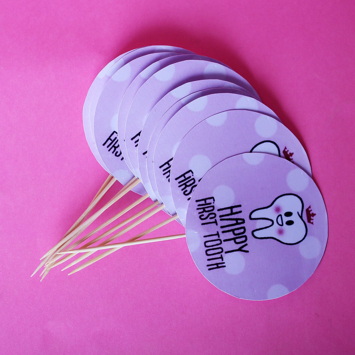 Happy First Tooth Cup Cake Topper For First Tooth Theme Party Decoration and Celebration