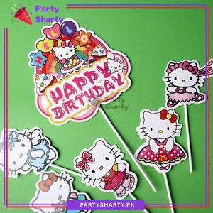 Hello Kitty Theme Cake Topper Set of 6 for Hello Kitty Theme Birthday Decoration and Celebration