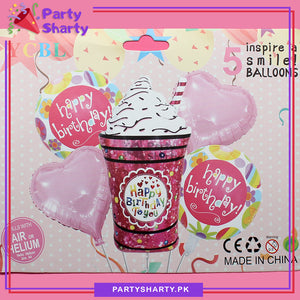 Ice Cream Shake Glass Foil Balloon Set of 5 For Icecream / Sweet One theme decoration and Celebration