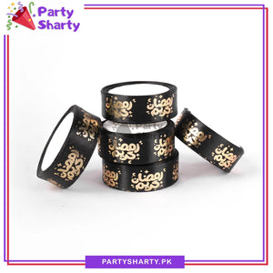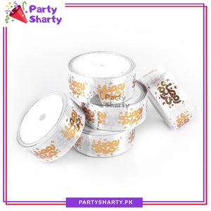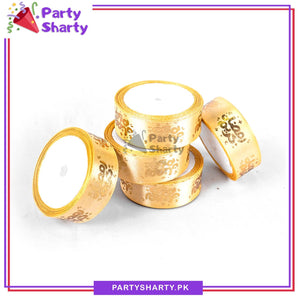 Imported 2.5CM Ramadan Kareem With Small Moon & Stars Golden Foil Printed Ribbon Roll For Ramadan Gift Decoration