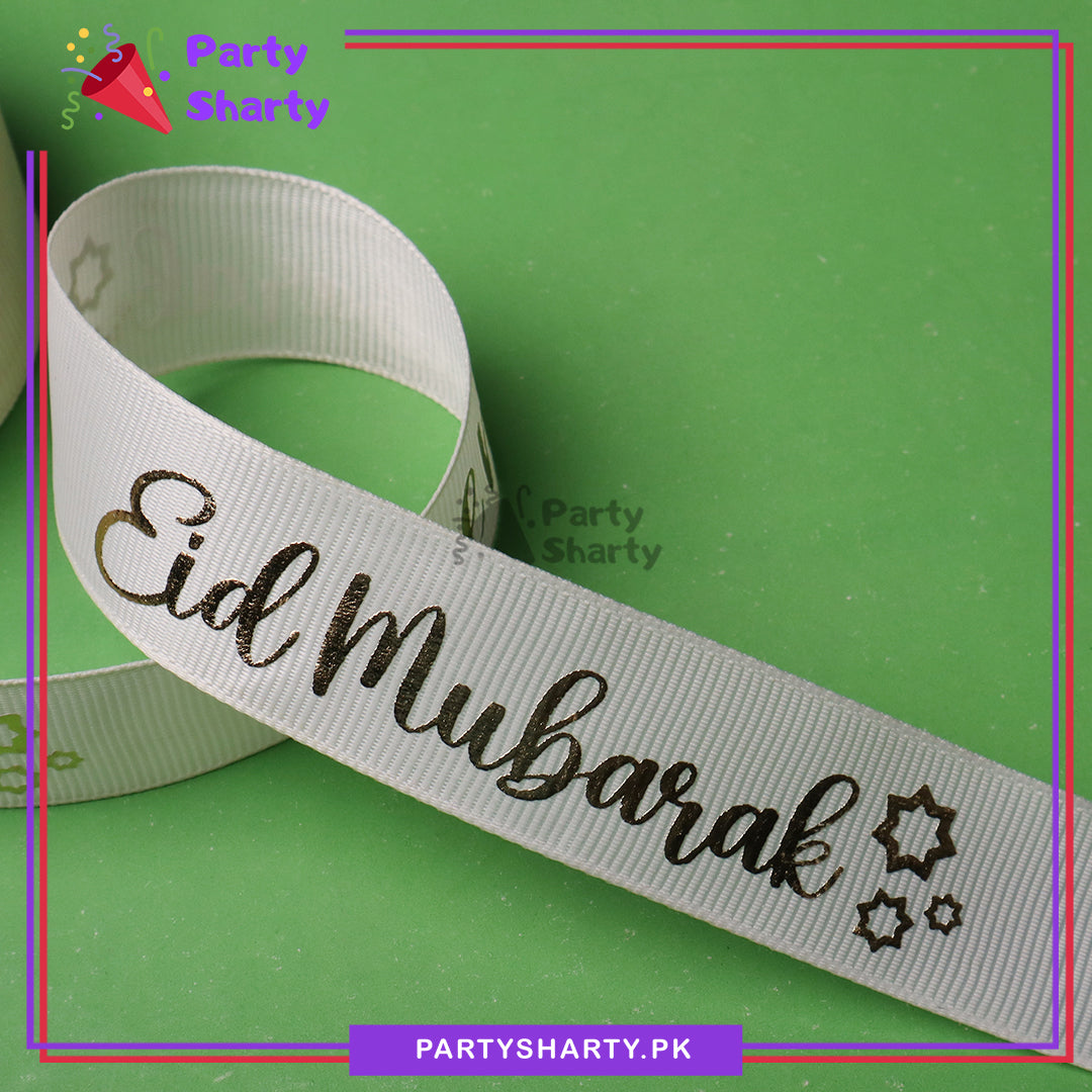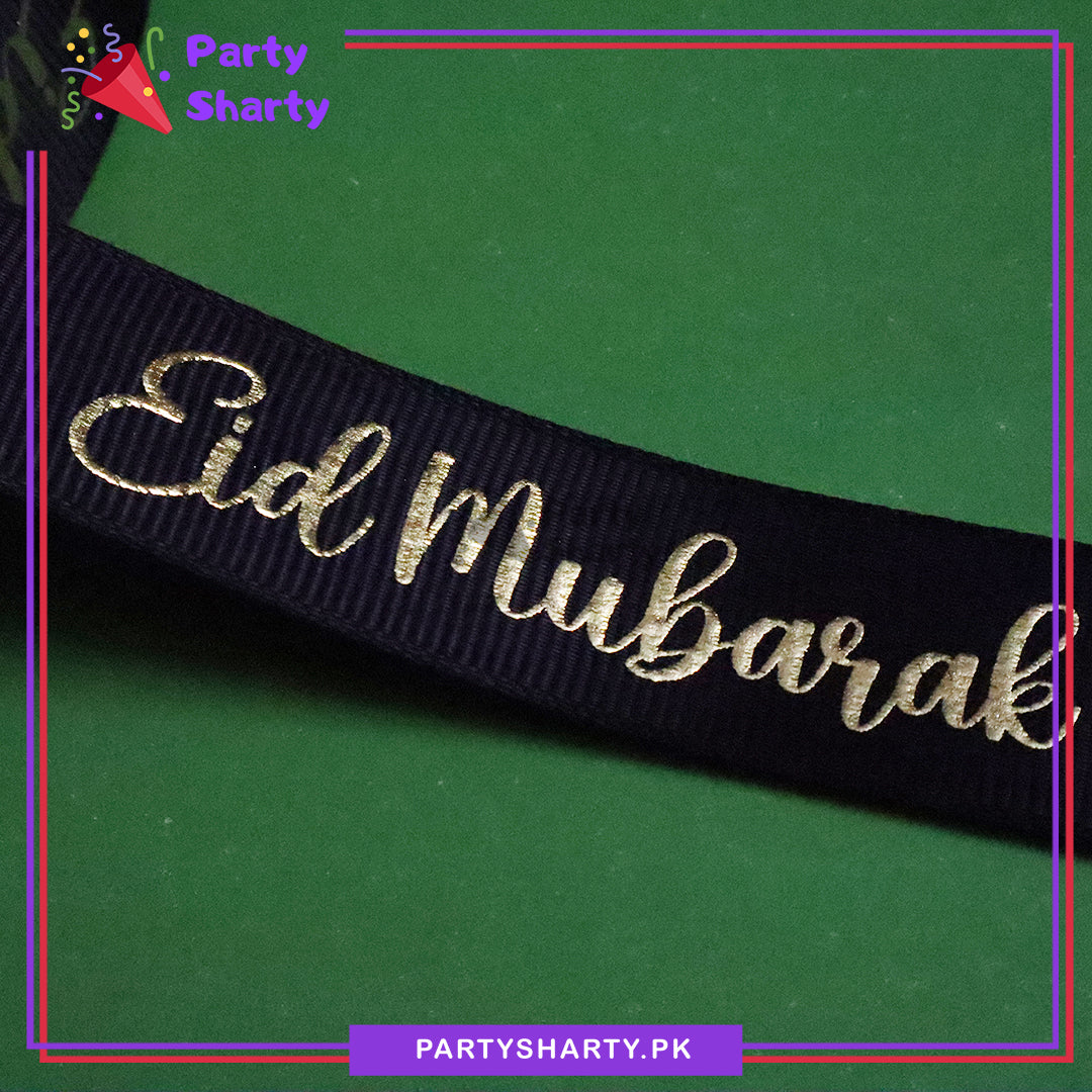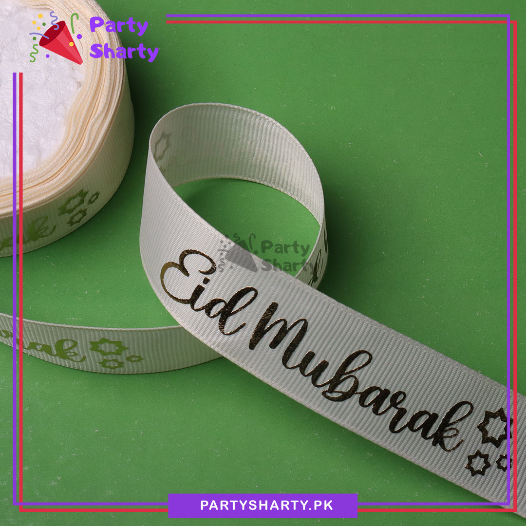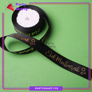 Imported English Eid Mubarak Foil Printed Lining Texture Ribbons For Gifts Wrapping / Decoration