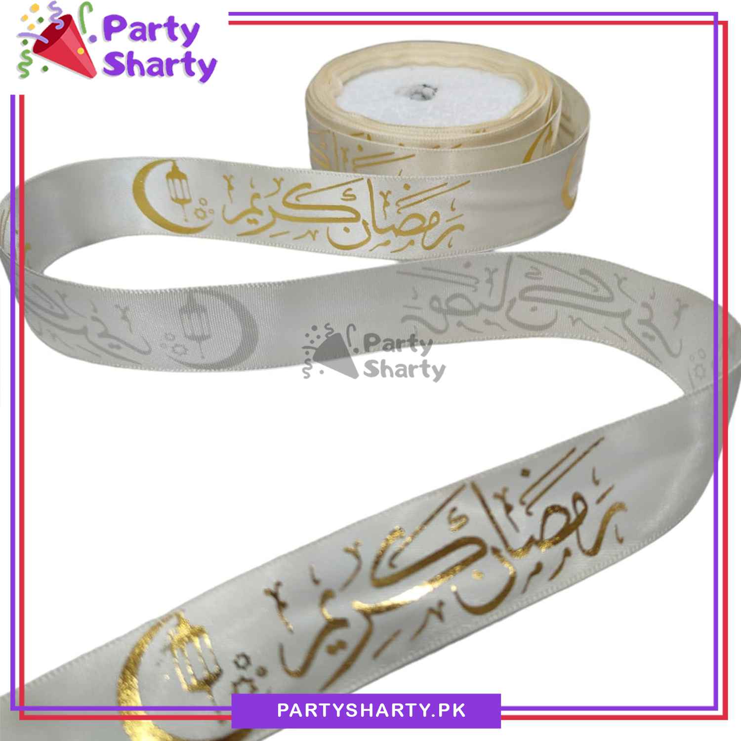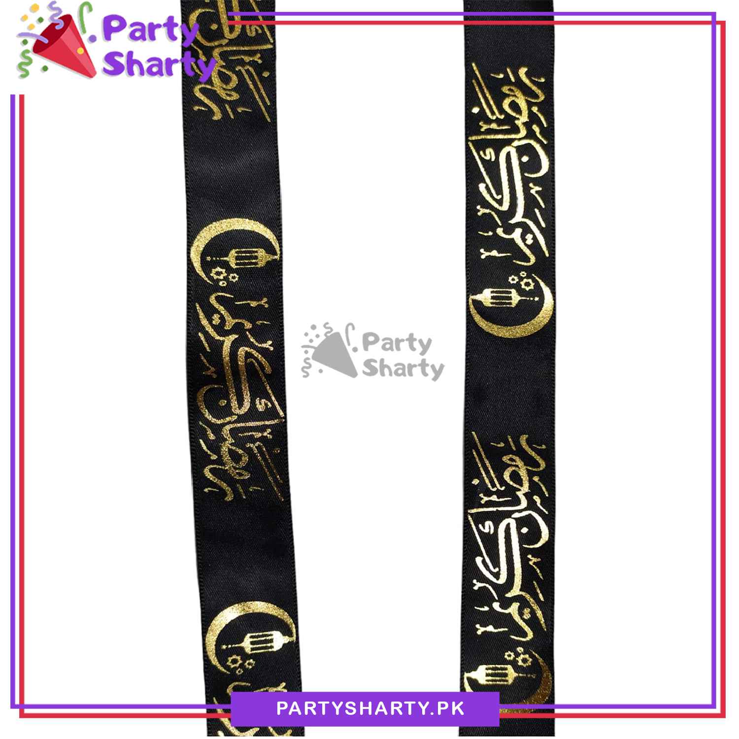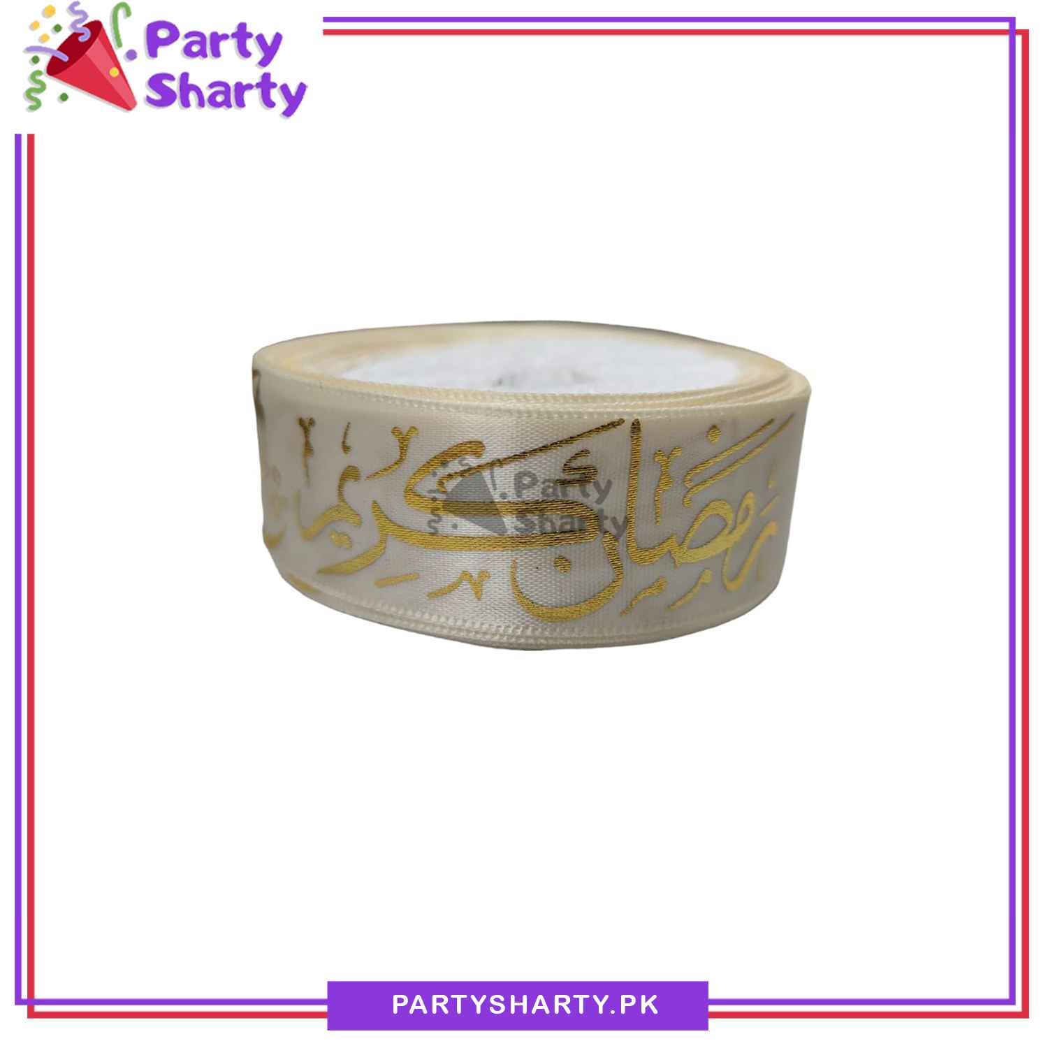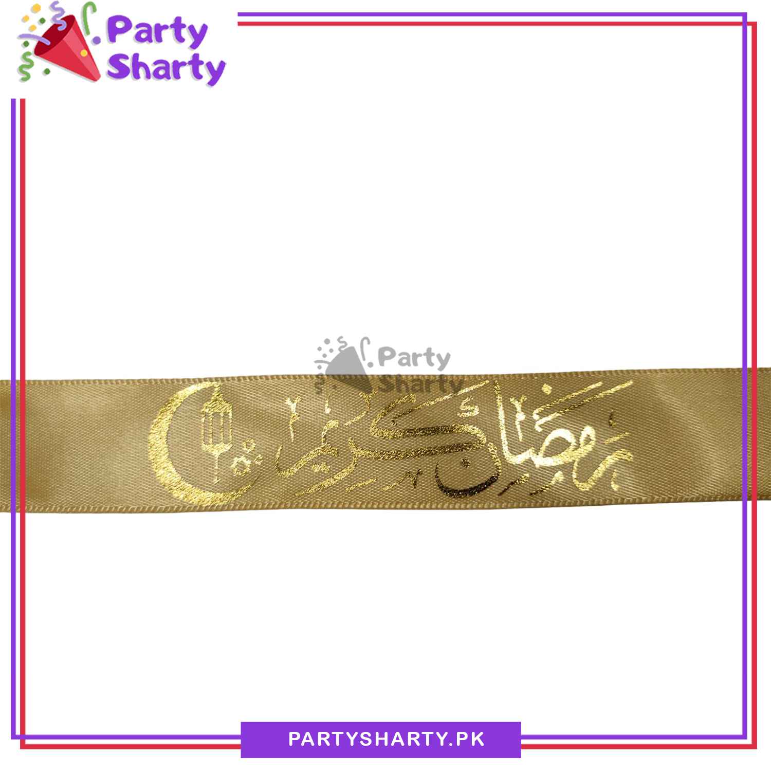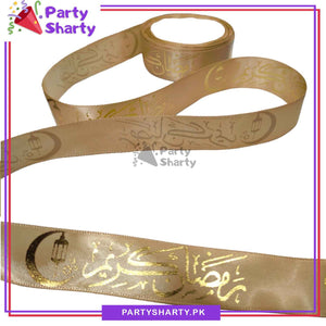 Imported Golden Ramadan Kareem Printed Ribbon Roll For Ramadan Gift Decoration