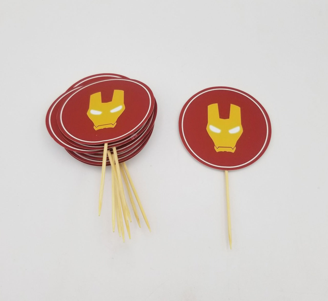 Iron Man Theme Cup Cake Topper! Party guests will love our Iron Man Theme Cup Cake Topper, and you'll love the convenience of disposable party supplies. This pack of 10 pcs Iron Man Theme Cup Cake Topper makes it easy and affordable to decorate cupcake and serve guests their favorite at your little baby's birthday party. Iron Man Theme Cup Cake Topper are sold in a package of 10 pcs.