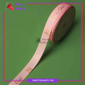 It's a Girl Golden Foil Printed Pink Texture Ribbons For Welcome Baby Celebrations