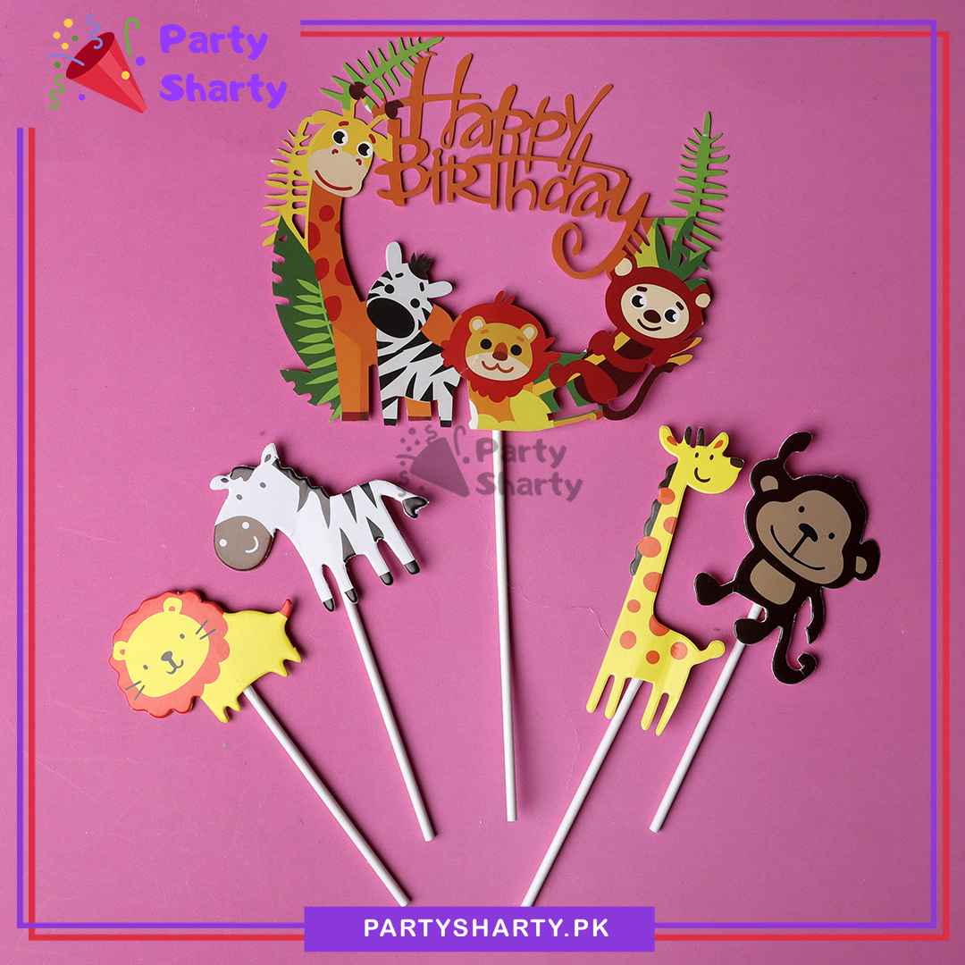 Jungle Theme Cake Topper Set of 5 for Jungle / Safari / Wild One Theme Birthday Decoration and Celebration