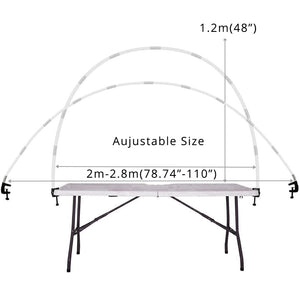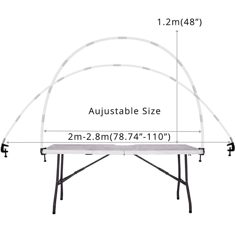 This balloon arch is very flexible to fit most of the tables, the height and width depend on the size of your table.